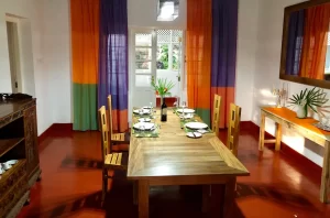 “Gammaduwa bungalow employs and trains local villagers, pays fair wages and is working towards a profit-sharing business. Having come to Sri Lanka as a VSO volunteer in 2009 (at the tail end of the civil war), supporting local peace and human rights organisations, Dave and his partner Sengli renovated this former tea plantation residence. It had been a rundown guesthouse but now is an outstandingly beautiful heritage bungalow. The food, prepared from locally sourced organic products, is a delight.” [Guardian Newspaper “10 of the best Ethical Holidays” 24/01/2019 by Kate May]