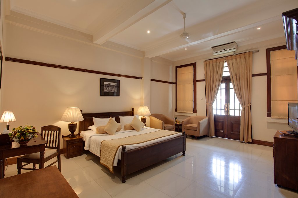 The colonial-style rooms at Hotel Suisse feature classic wood furnishings and floral fabrics. They are fitted with satellite TV and private bathrooms with hot/cold shower.