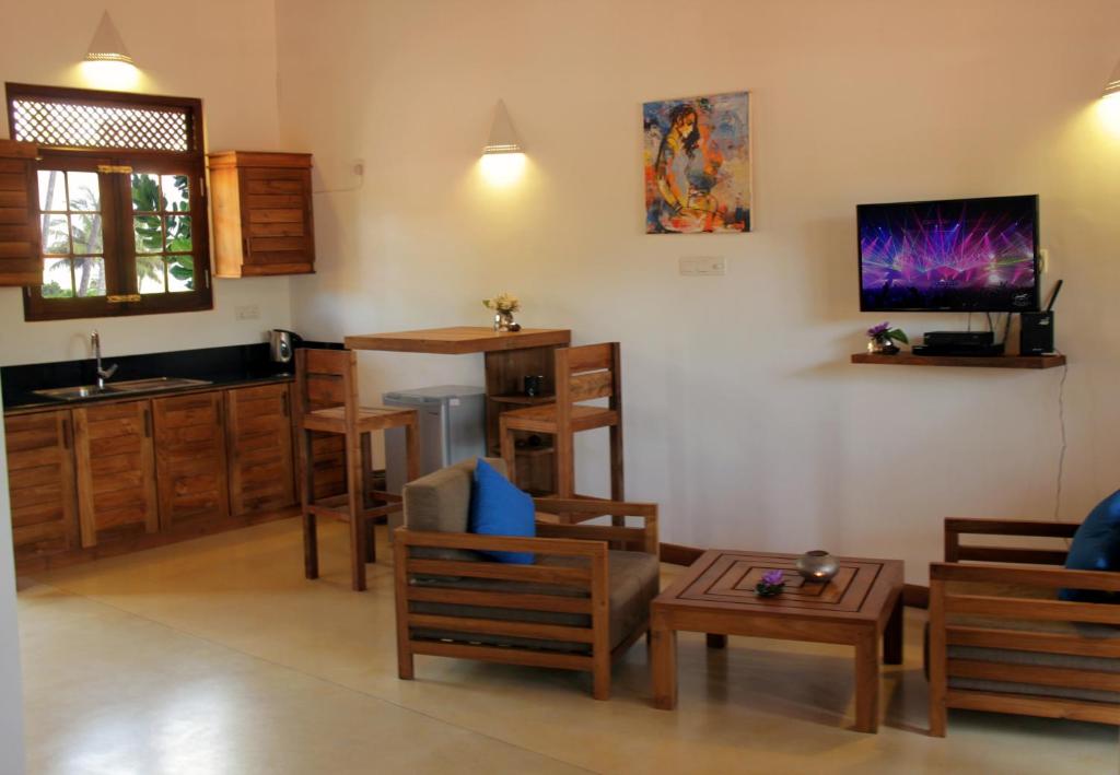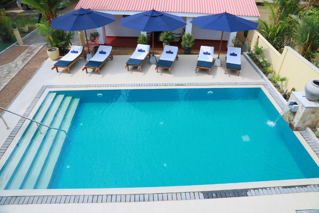 The inn is 2 km from Aluthgama Beach and 5.2 km from Ventura Beach and the Bentota Railway Station. The Bandaranaike International Airport is 110 km away. The city of Colombo is 60 km.